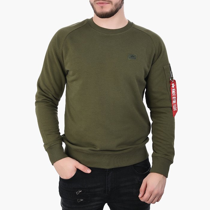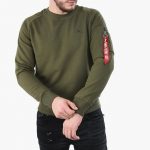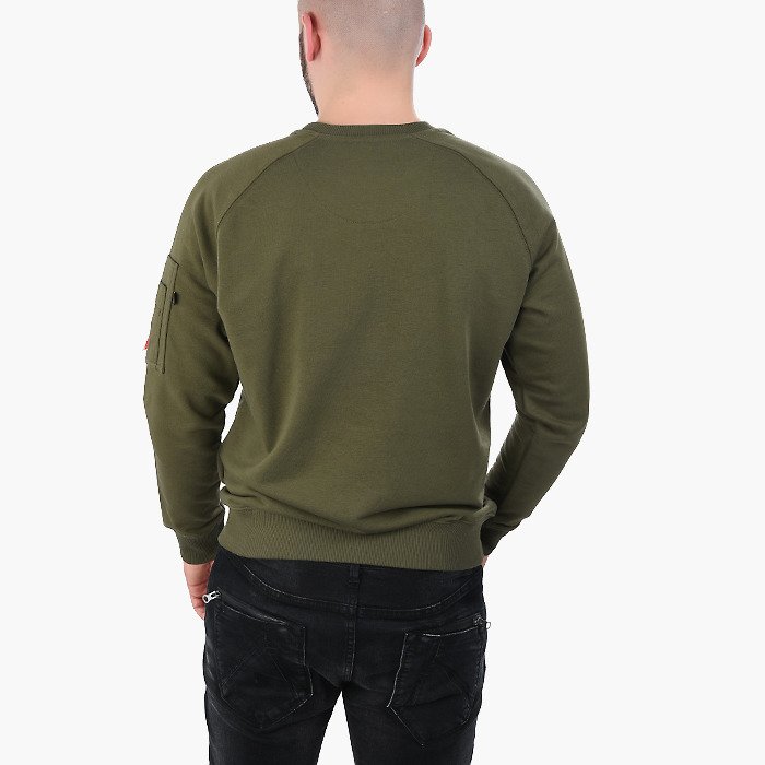 Progettata per le attività atletiche, questa felpa in spugna di cotone super confortevole è dotato di una patch in tessuto Alpha Industries sul petto, etichetta di volo e tasca per matite.