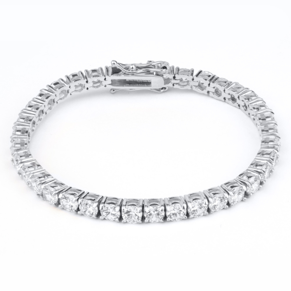 Bracciale Tennis in Acciaio Inox rivestito in Oro Bianco 18 carati, Fissaggio Elettromagnetico e Zirconi taglio Diamante Qualità 5A+. Logo Inciso e Larghezza maglia 0.5cm. Disponibile nella Misura Unica 19/19.5cm (7.5inch).
