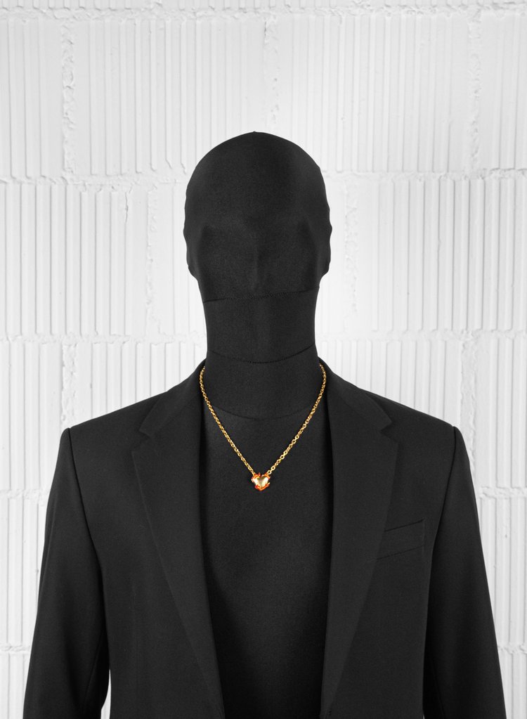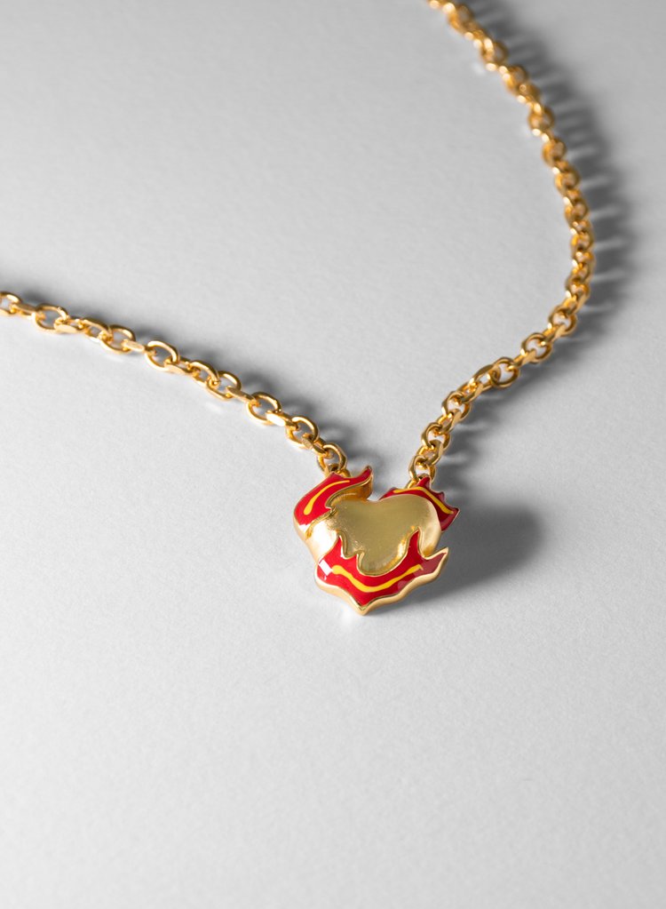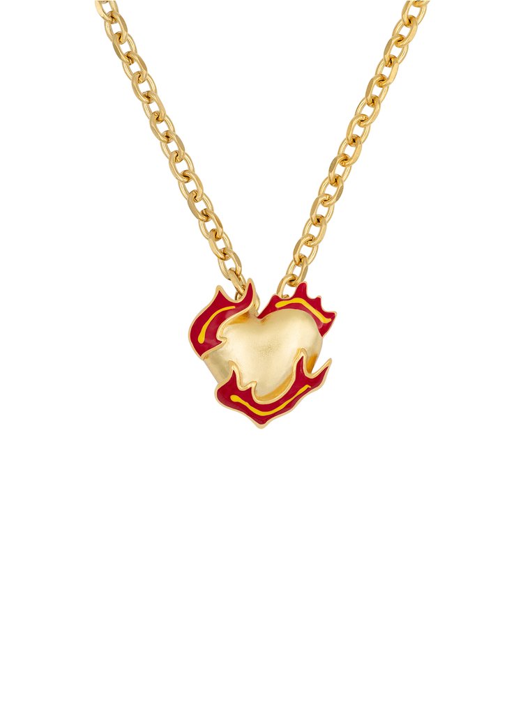 Collana con ciondolo a cuore rivestito in oro rodiato/18 ct. con smalto rosso-giallo dipinto a mano e finitura satinata. Chiusura a moschettone con targhetta logo in metallo.