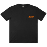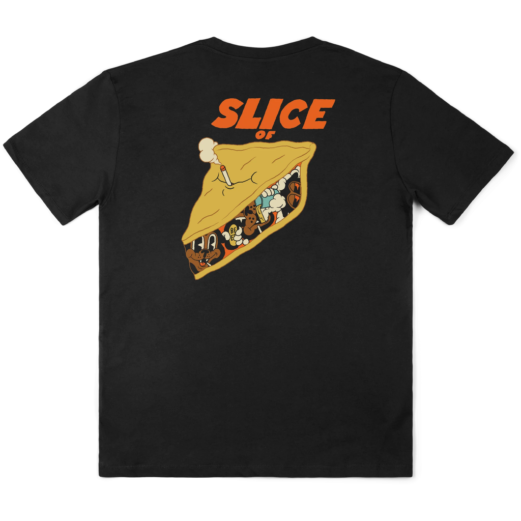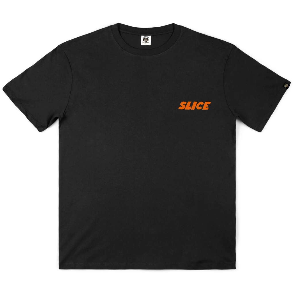 T-shirt girocollo a manica corta “SLICE” di Dudes Factory. T-Shirt con stampa su petto e schiena. 100% cotone.