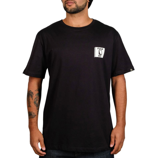 T-shirt girocollo a manica corta “SWITCH” di Dudes Factory. T-Shirt con stampa su petto e schiena. 100% cotone.