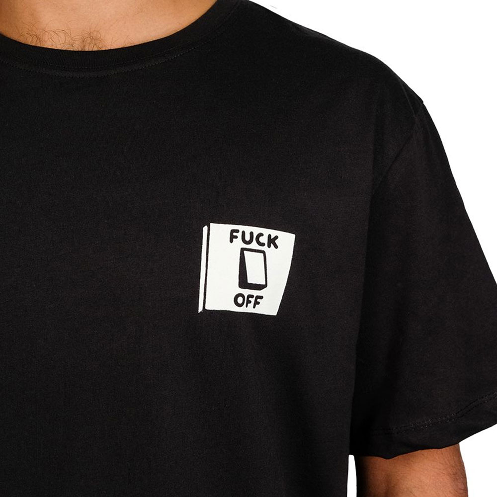 T-shirt girocollo a manica corta “SWITCH” di Dudes Factory. T-Shirt con stampa su petto e schiena. 100% cotone.