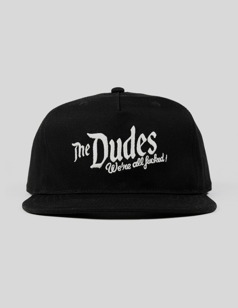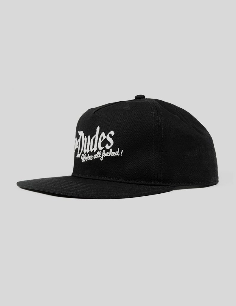 Cappellino “WE ARE ALL FUCKED” di Dudes Factory. Grafiche ricamate. 80% acrilico 20% cotone.