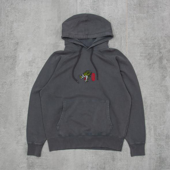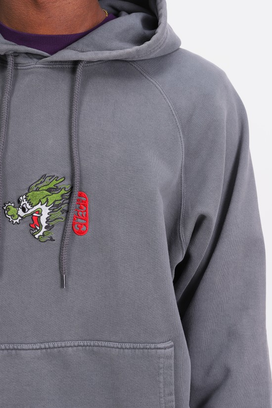 Felpa con cappuccio “Dragon Hoodie” di Edwin. Il drago è una delle creature soprannaturali tra le più conosciute nel folkore giapponese. Nella mitologia nipponica, il drago è associato all’acqua, una divinità quindi della pioggia e delle correnti. Edwin omaggia la potenza e la maestosità di questa creatura leggendaria, proponendola con un ricamo frontale su questa hoodie dalla vestibilità abbondante. Il tessuto della felpa è stato lavorato con un particolare lavaggio che gli dona un colore ‘slavato’ dall’effetto vissuto, mentre la comoda tasca a canguro permette di riporre al suo interno gli oggetti personali.