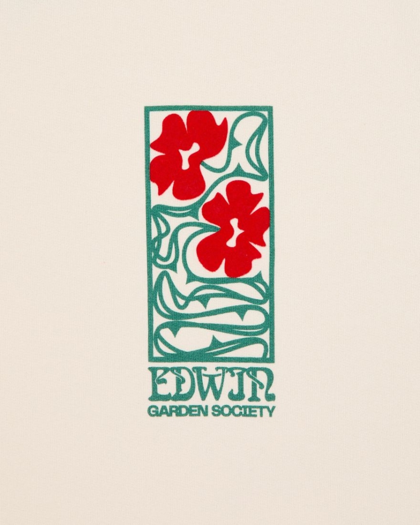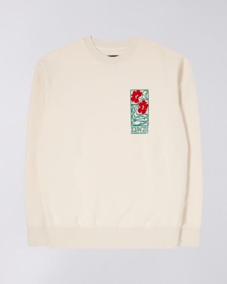 La felpa Garden Society di EDWIN è una felpa oversize con stampa in feltro sul petto ed è realizzata al 100% in cotone.