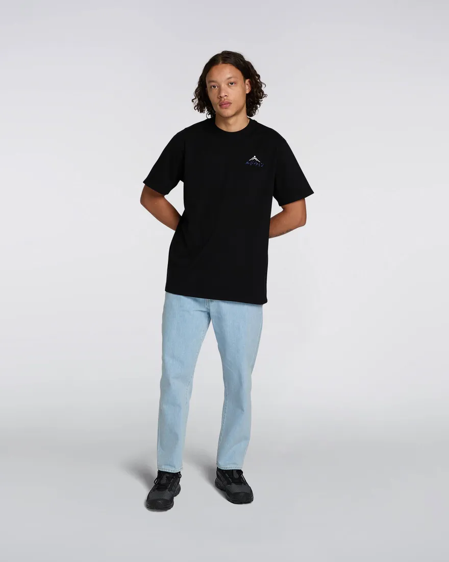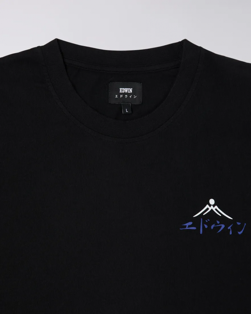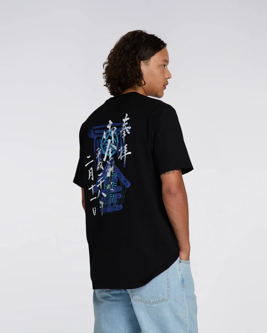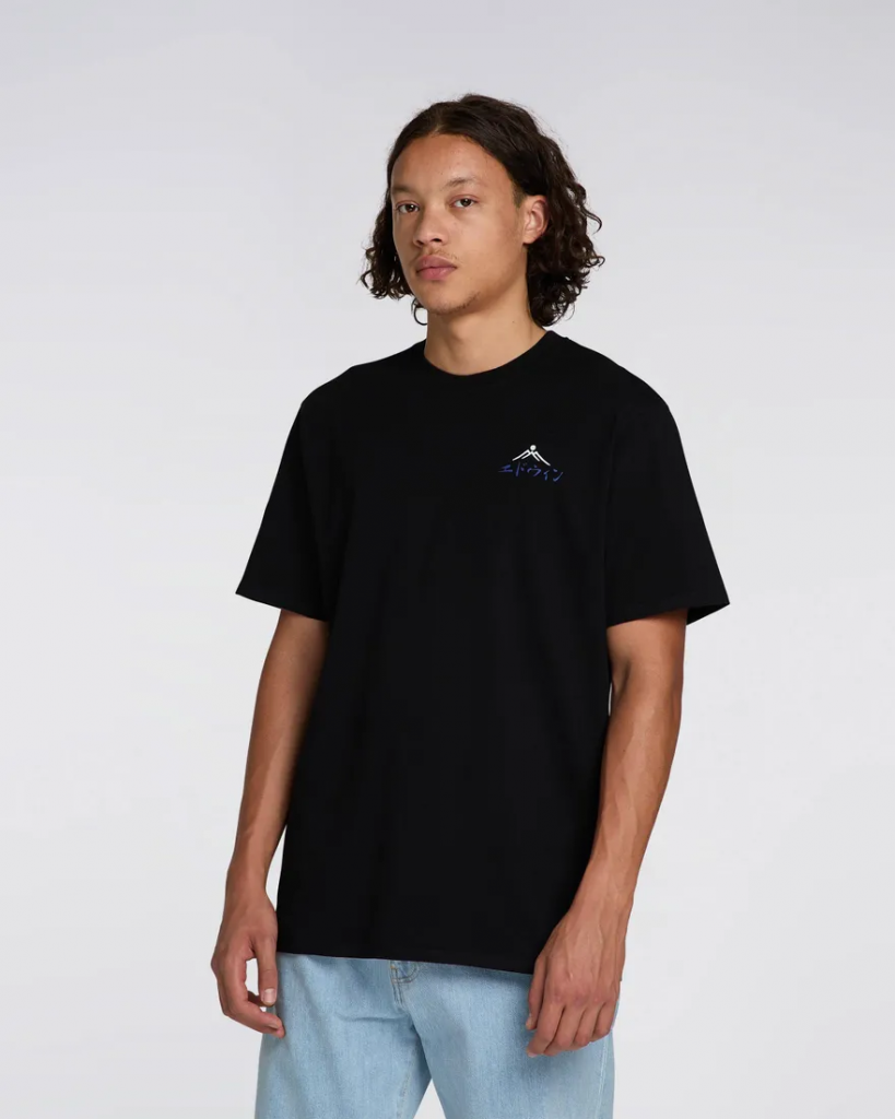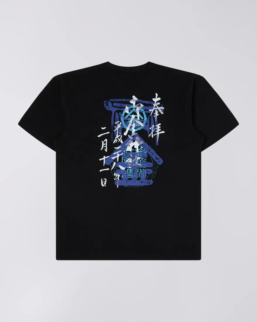 La T-Shirt EDWIN Goshuin II è una T-shirt a maniche corte dalla vestibilità regolare realizzata in 100% cotone con stampa sul petto e sul retro e colletto a coste.