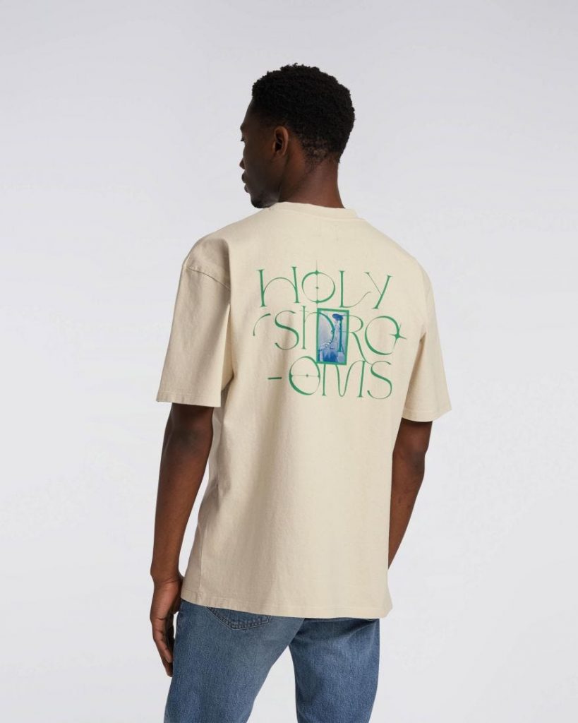 La EDWIN Holy Shrooms T-Shirt è una T-shirt oversize a maniche corte con stampe digitali sul petto e sul retro e realizzata in 100% cotone con colletto a coste.