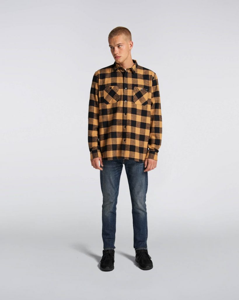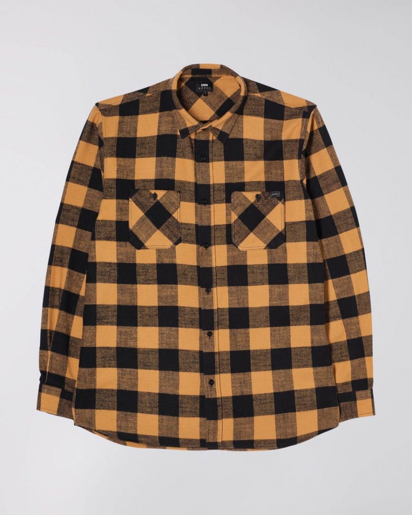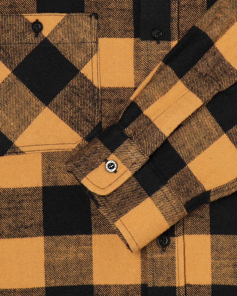 La camicia da lavoro a maniche lunghe di Edwin è morbida al tatto ed è realizzata in 100% cotone e morbida flanella spazzolata. La camicia ha due tasche frontali sul petto. Sulla sinistra c’è una piccola etichetta con il marchio in Giapponese.
