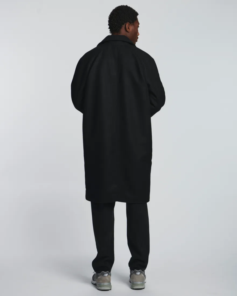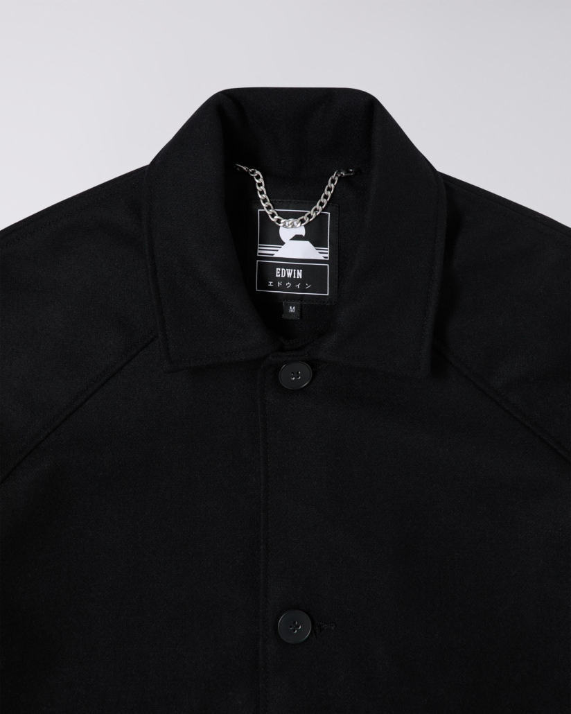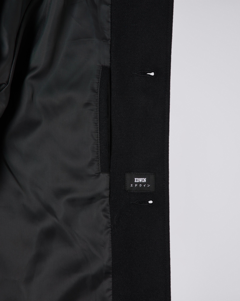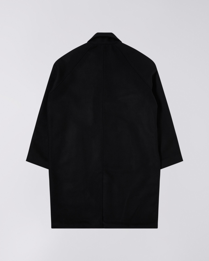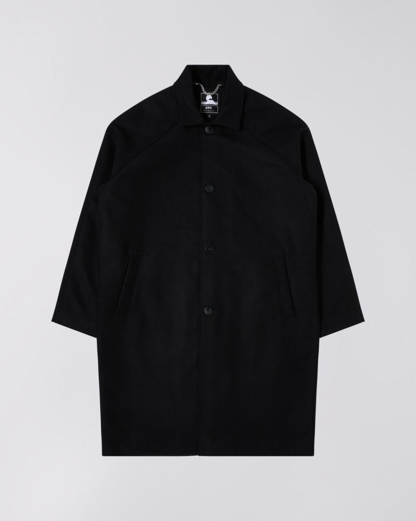 Il cappotto EDWIN Mac Wool Coat è un cappotto oversize realizzato con un tessuto di lana a doppio strato da 465 g/m².