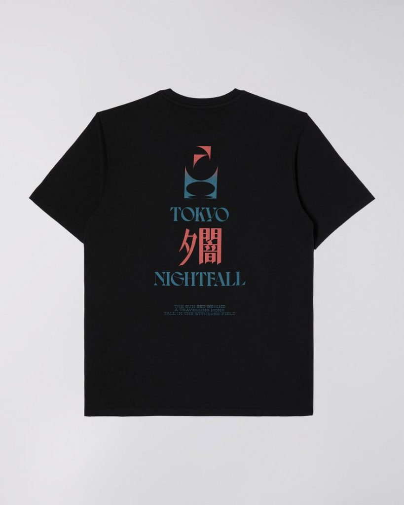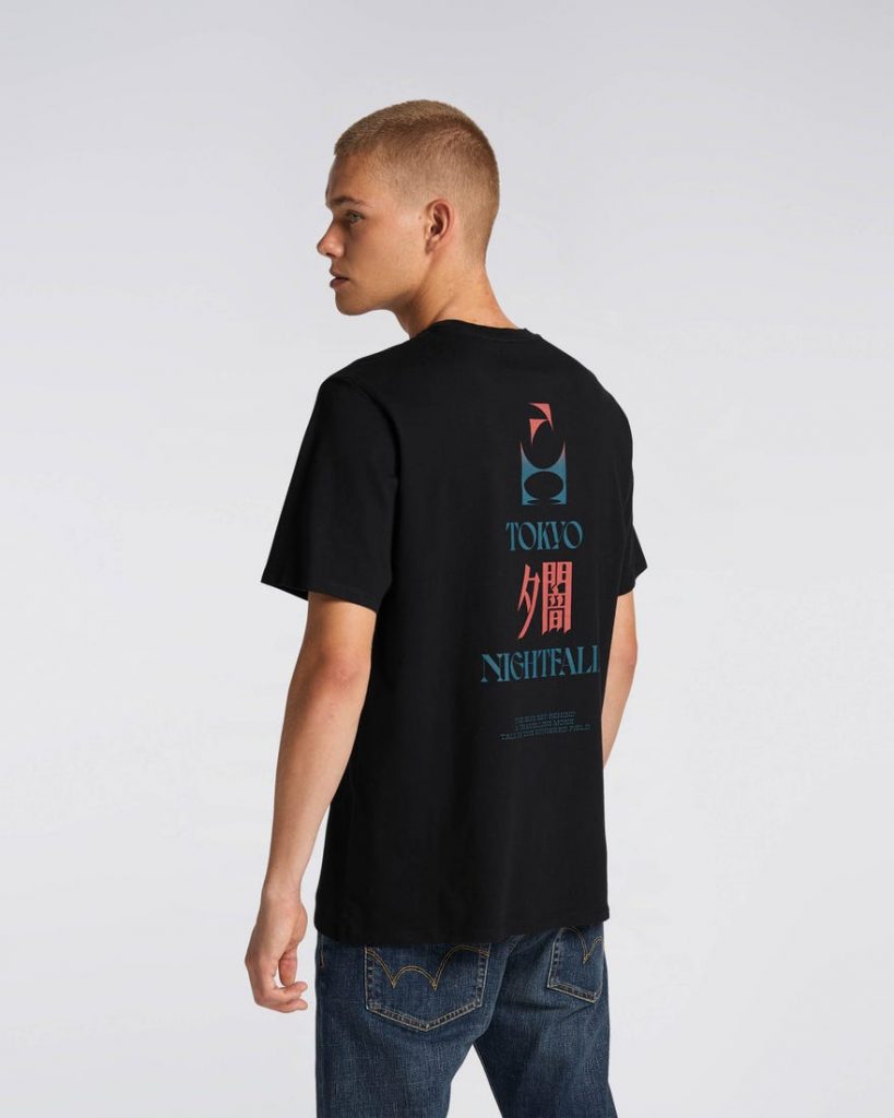 “Tokyo Nightfall” è la t-shirt a maniche corte di EDWIN realizzata in morbido cotone e presenta una grafica personalizzata stampata sul petto e sulla schiena.