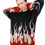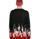 Maglione di VISION OF SUPER. Black jumper with double flames. Modello con girocollo, aspetto vissuto, maniche lunghe e polsini a coste. Prodotto in Italia.