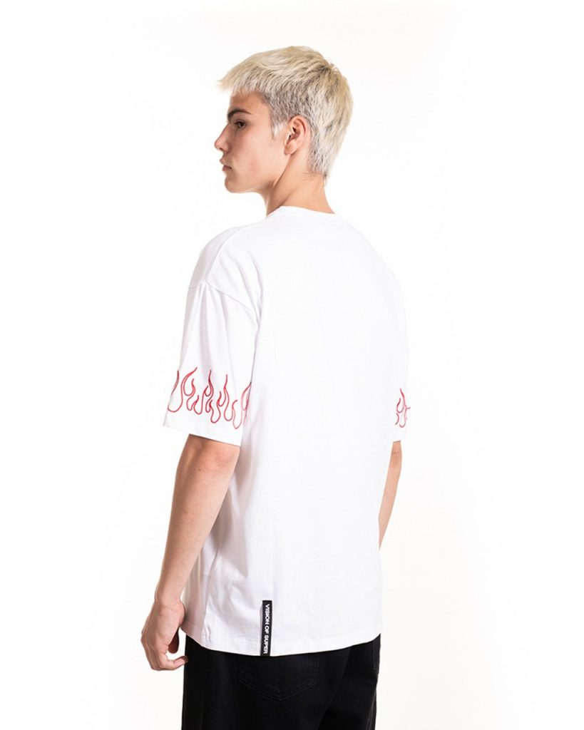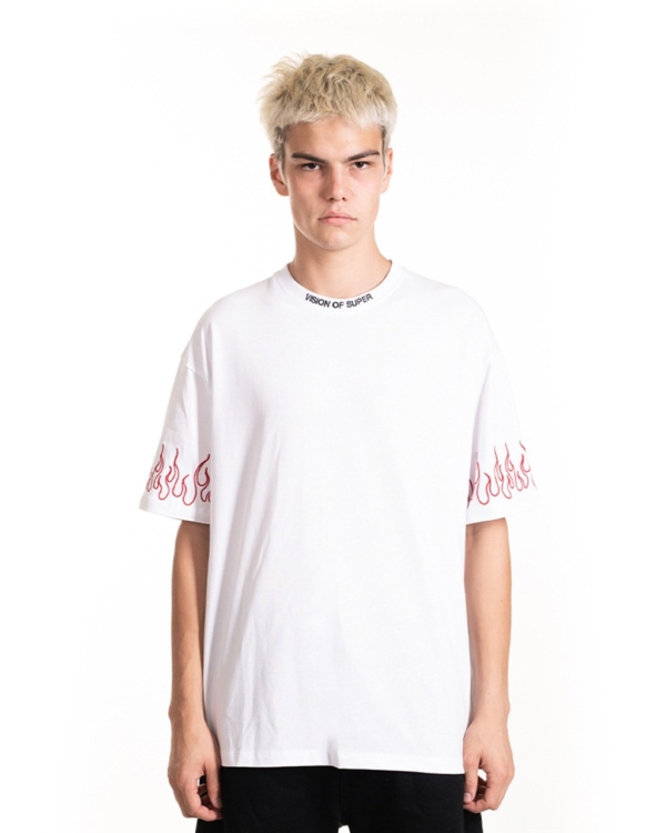 T-shirt bianca a girocollo in cotone di VISION OF SUPER. Modello con dettagli ricamati, girocollo, manica corta e orlo dritto. Prodotto in Italia.