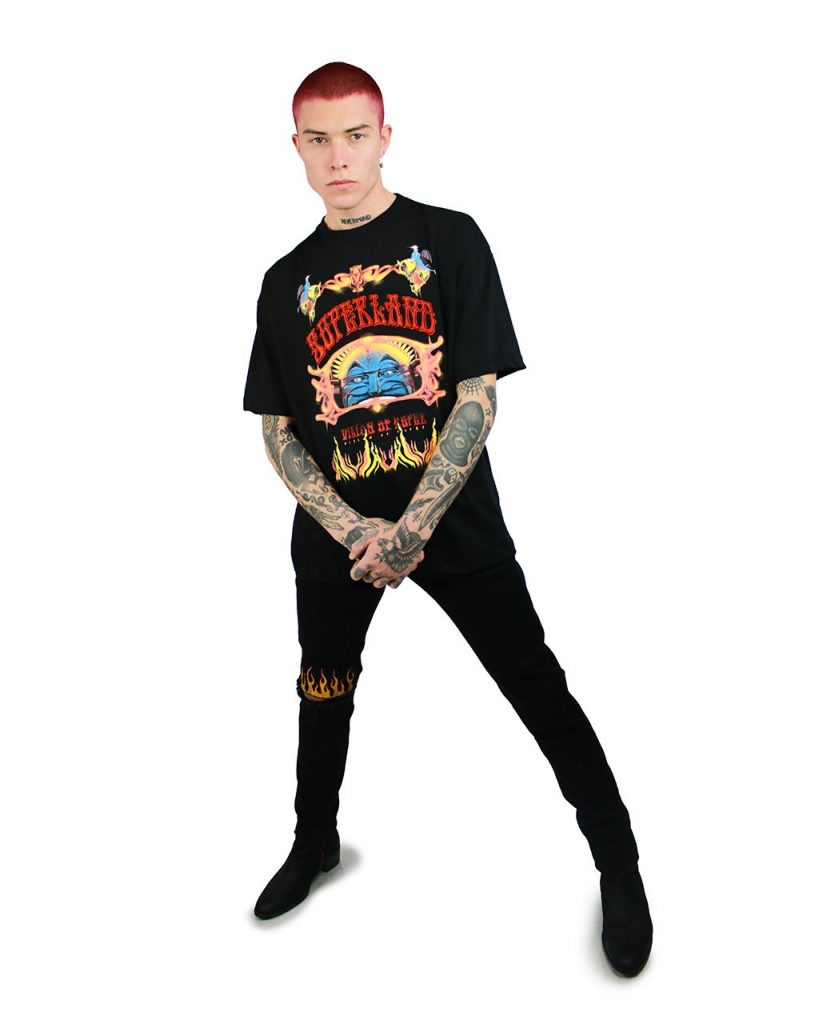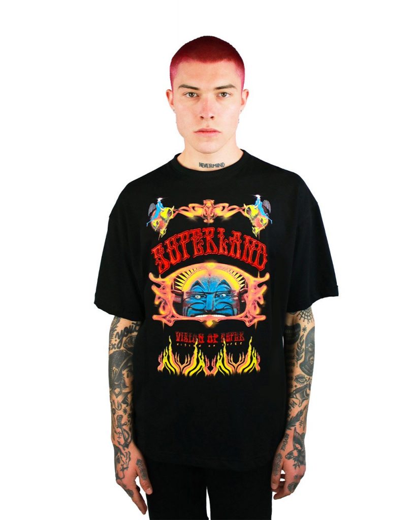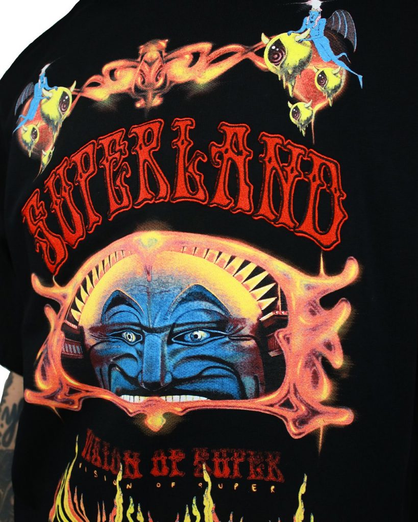 T-shirt SUPERLAND a girocollo in cotone di VISION OF SUPER. Modello girocollo con ricamo, manica corta e orlo dritto. Prodotto in Italia.